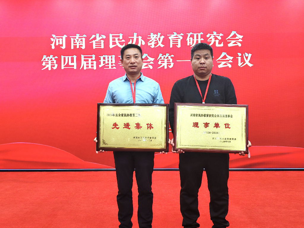 我校荣获“2024年度全省民办教育工作先进集体”及“河南省民办教育研究会第四届理事会理事单位”荣誉称号;郑州艺书高级中学李光照老师、刘明刚老师荣获“2024年度全省民办教育工作先进个人”荣誉称号。